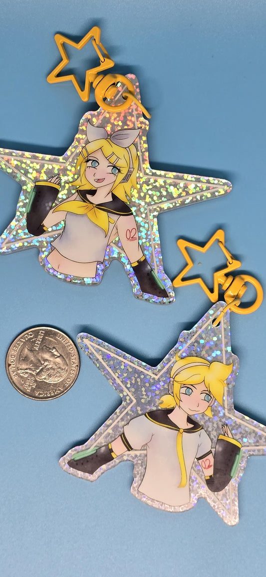 Vocaloid Rin and Len Kagamine Double-Sided Holo Keychain