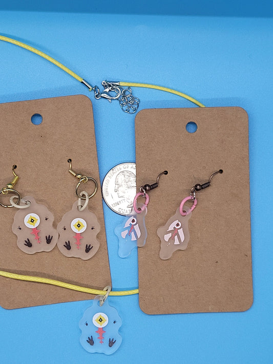 Ai The Somnium Files Frosted Acrylic Aiba and Tama Dangle Earrings + Cord Necklace