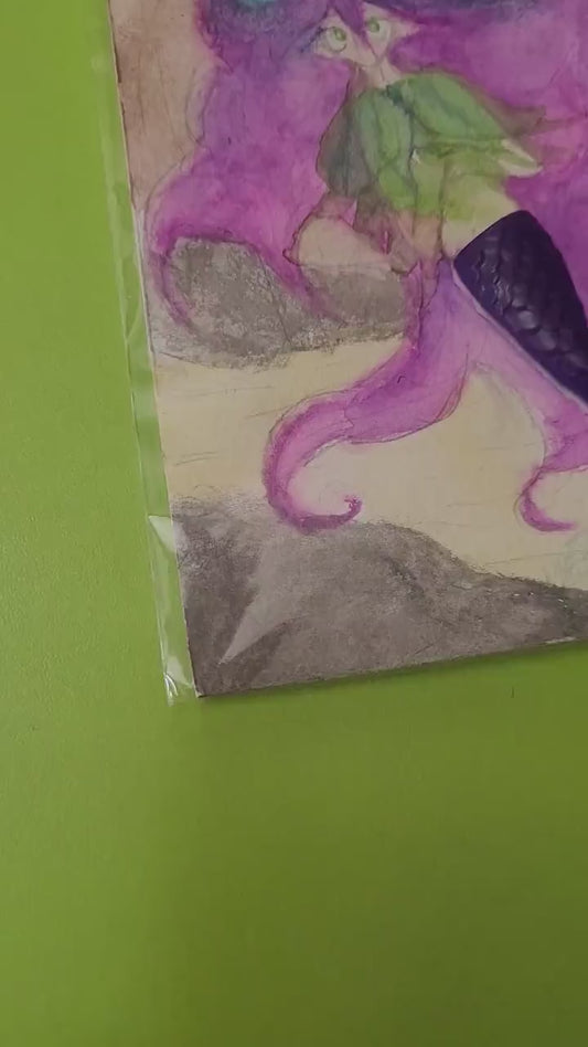 Underwater Mermaid Painting - Polymer Clay Tail - 5x7 Original or 4x6 Prints