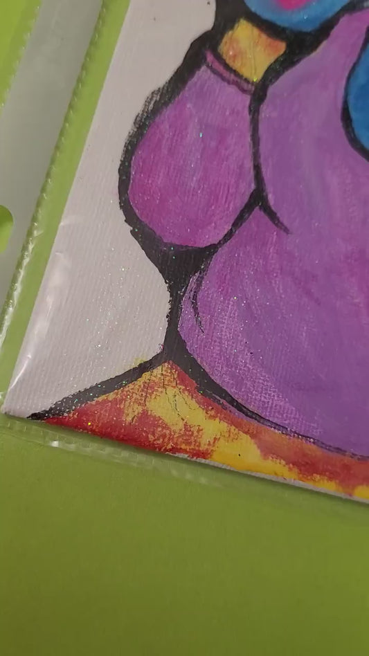 Pink And Blue Anthro Furry Cat Girl Original Acrylic Painting 6x8
